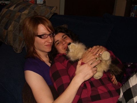 It’s been a while but what can I say, I am exhausted and pretty worn out after the holidays. The past week has been filled with family events and chaos and I am just glad it is over. I will admit I have been depressed, I am not sure why but I can feel the lack of motivation and wanting to sleep all day wearing on me. On the bright side my girlfriend has been staying over a lot and I got to spend new years with her :3 This is a picture of me and her from yesterday. I go a rocky horror shirt today as a late christmas present and I thought it’d be a perfect time to take some new pictures. I have no makeup on so you can see how my face has been affected from the hormones. Anyways I just wanted to give a little update so it didn’t look like I fell off the face of the earth. Bai!